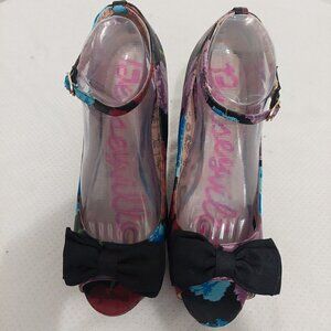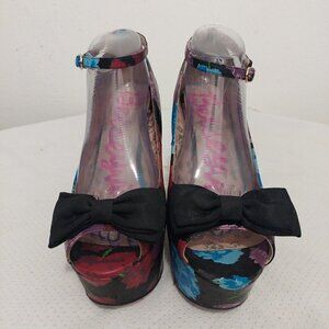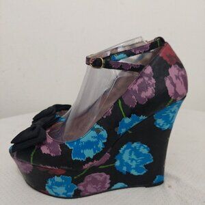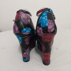 Betseyville By Betsey Johnson Black Floral Ultra High Wedges Ankle Strap Sz 9.5M