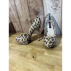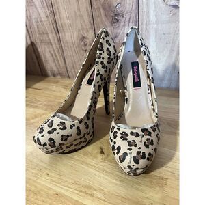 Betseyville Cheetah Leopard Print Platform Pumps 5" Heels Stilettos Size 8.
