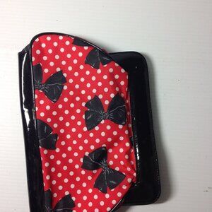 Betseyville by Betsey Johnson Clutch Bag Read & White Dot Pattern with Ribbons