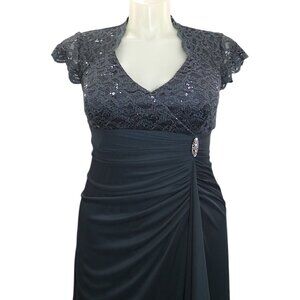 Betsy & Adam Gray Lace Sequin Gown Sz 14 Mother of Bride Formal Evening Dress