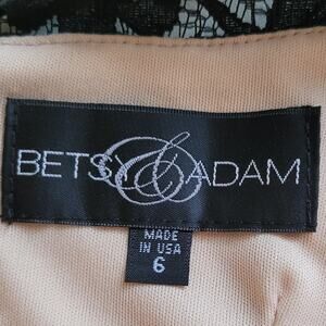 Betsy & Adam A Line Mini Dress V Back Tulle Lace Belted Size 6 Black Fairy Goth