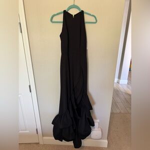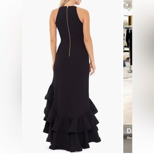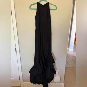 Betsy & Adam "ARIELLE" SCUBA Black CREPE RUFFLE SLIT GOWN size 2