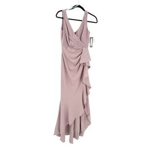 Betsy Adam Aqua Cascade Ruffle Maxi Gown Sleeveless Rose Pink Size 4 NWT