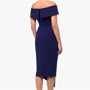 Betsy & Adam Asymmetrical Off-Shoulder Dress in Navy