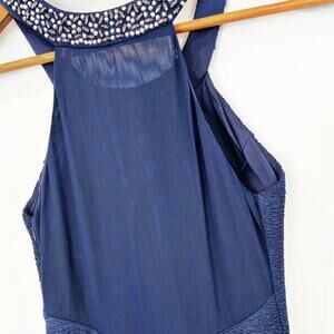 Betsy & Adam Beaded Embellished Halter Neck Minidress Navy Blue Size 4 NWOT