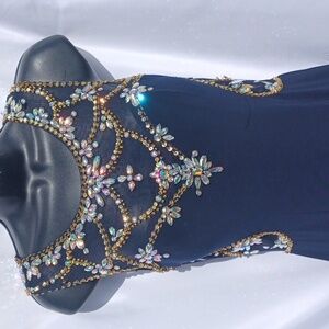 Betsy & Adam Beaded Evening Gown – Size 8, Dark Navy W/ Orange Lining, Side Zip