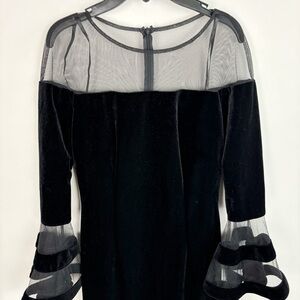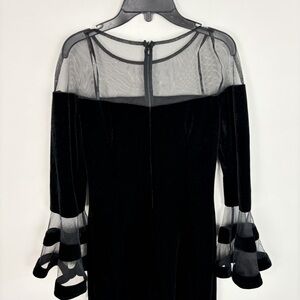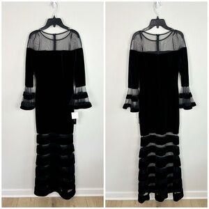 Betsy & Adam Bell Sleeve Striped Mesh Velvet Maxi Dress in Black Size 2
