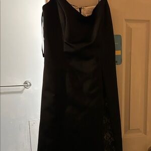 Elegant black dress with lace detailing. Perfect for weddings. Sophisticated and stylish.