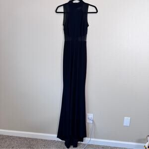 Betsy Adam Black Mesh Illusion Mesh Cut Out Maxi Dress Womens 0 Formal Black Tie