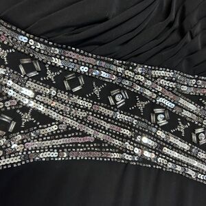 Betsy & Adam Black One Shoulder Long Formal Gown with Silver Bead Detail Size 6