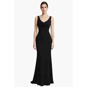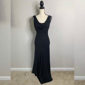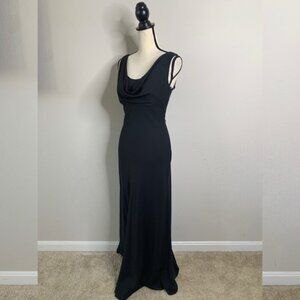 Betsy & Adam Black Vintage Inspired Cowl Neckline Evening Maxi Dress