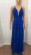 This striking blue maxi gown features a daring plunge neckline and delicate spaghetti straps, perfect for making a statement at prom or cocktail events. The luxurious fabric flows gracefully to the floor, exuding elegance and sophistication.
