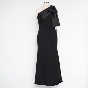 Betsy & Adam - "Carmela" Long Scuba Crepe Dress With Satin Bow