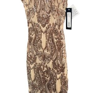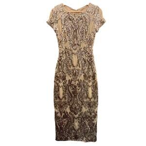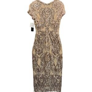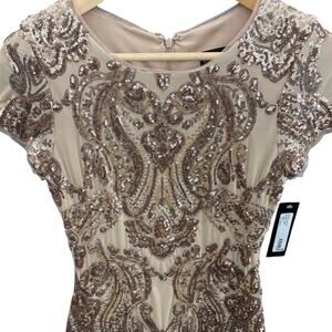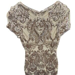 Key words: formal dress, evening gown, sequin dress, party dress, special occasion, champagne dress, size 6, Betsy & Adam, short sleeve dress