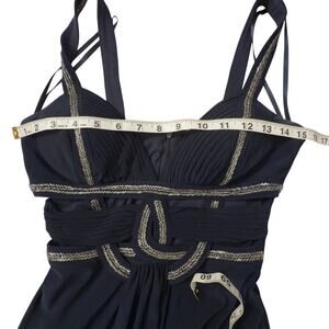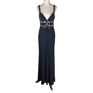 Betsy & Adam Dark Blue Beaded Cut Out Evening Gown Size 2