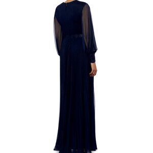 Sequin-encrusted flowers sparkle on the waistband and cuffs of a gauzy long-sleeve gown that's a stunning choice for your next occasion.