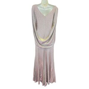 Betsy & Adam Drape Back Boat Neck Galaxy Glitter 3/4 Sleeve Sheath Gown NWT Size