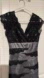 This elegant dress features a sophisticated black lace overlay on a sleek gray base. Perfect for any special occasion.