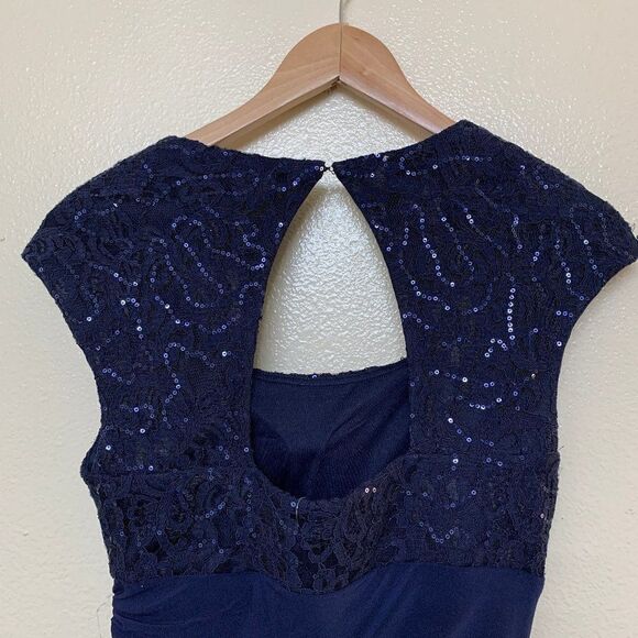 Betsy & Adam Embellished-Top Cap-Sleeve Gown B180 Size 6 Maxi Dress Navy $159 NWOT