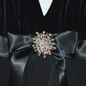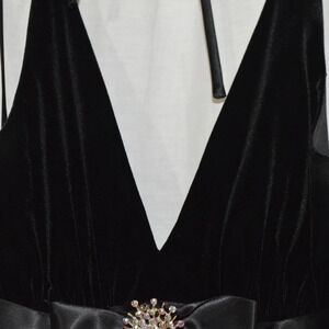 Betsy Adam Formal 4 Dress Black Sleeveless Ruffle Drape Layer Jeweled Prom