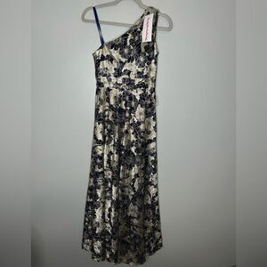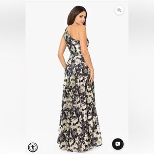Betsy & Adam GWEN" LONG ONE SHOULDER WRAP FOIL FLOWER DRESS PETITE NWT