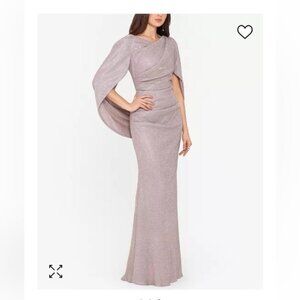 Betsy& Adam Glitter Drape- Back Cape Gown