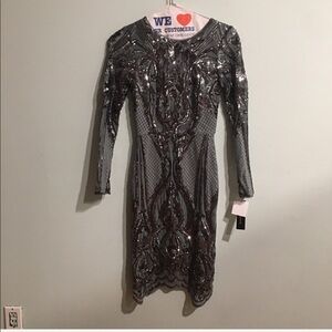 Betsy Adam | Gun Metal Sequined Sheath Dress Sz 2