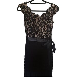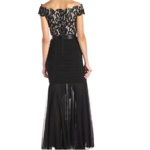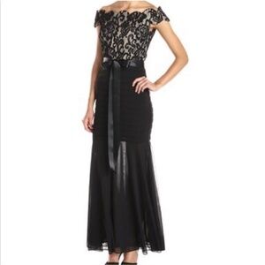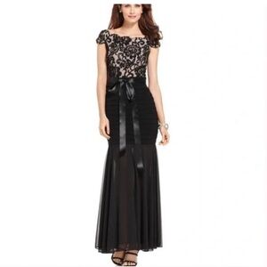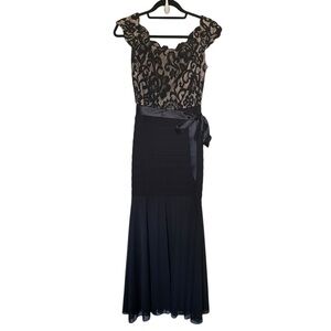 Betsy Adam Lace Illusion Neckline Mermaid Maxi Dress Gown