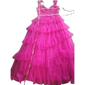 Stunning tiered ruffle mesh detailing creates a voluminous and dramatic silhouette