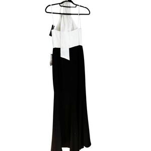 Betsy & Adam Long Scuba Crepe Sleeveless Gown Flower Trim Black White Size 6 NWT