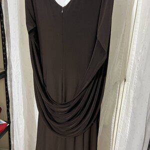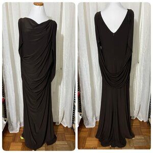 Betsy Adam MIRIAM Long Jersey Draped Back Gown Sz 18W in Chocolate Brown NWOT
