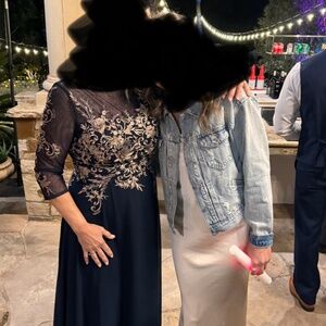 Timeless gown with metallic embroidery details along the sleeves and bodice for extra flair.