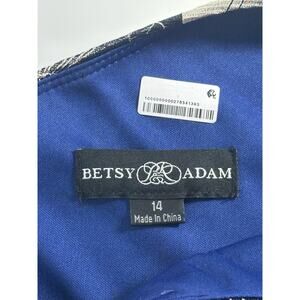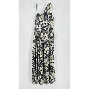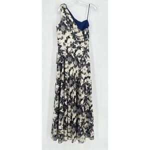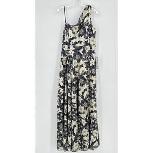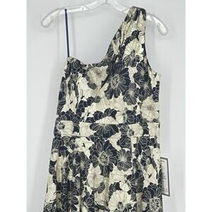 Betsy & Adam Metallic Floral One Shoulder Gown Size 14 Navy Gold A-Line Formal