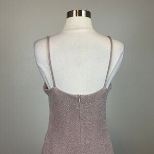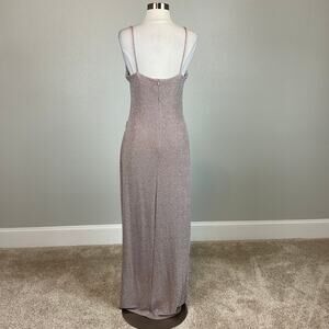 Betsy & Adam Metallic Knit Evening Gown Taupe Purple Size 6 Thigh Slit Formal