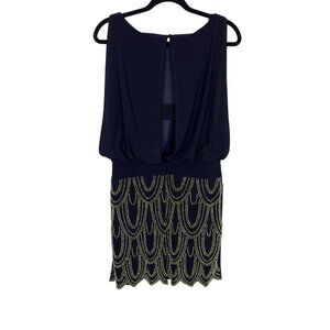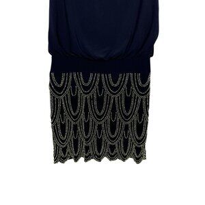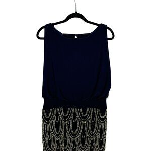 Betsy & Adam Navy Blue Beaded Flapper Dress Cocktail Wedding Guest Size 10