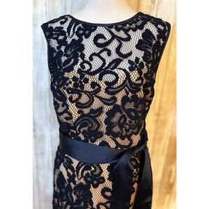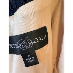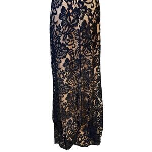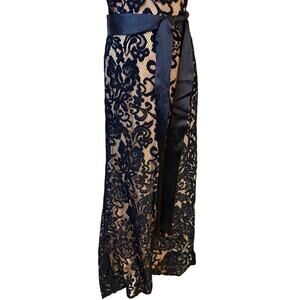 Betsy & Adam Navy Blue Lace and Taupe Evening Gown Size 6