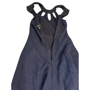 Turn heads in this stunning Betsy & Adam navy sparkly cocktail dress—a showstopper for any special occasion. Featuring a shimmering navy blue fabric with a flattering A-line silhouette, this dress is both elegant and eye-catching. The jeweled neckline adds glam while the cutout detailing gives it a modern, flirty edge. Designed with a back zip closure and neck hooks for a secure fit, plus a hidden side zip for added ease. Fully lined for comfort and coverage. Perfect for weddings, formal events, or cocktail parties—this dress blends sparkle, sophistication, and standout style in one gorgeous look!