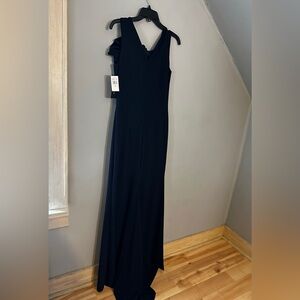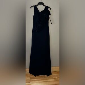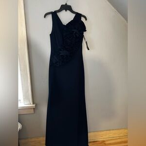 Betsy & Adam Navy Sleeveless Crepe Gown with 3D Ruffle Detail Size 8 NWT