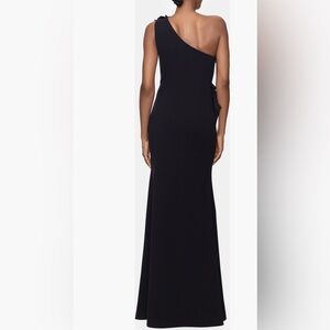 #BetsyAndAdam #EveningGown #BlackTieStyle #GalaGlam #OneShoulderDress #StatementRuffle #FormalFashion #CocktailHourStyle #OOTN #BlackDressLove