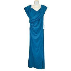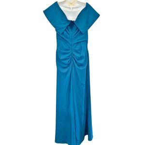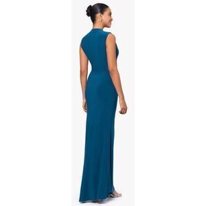 Betsy & Adam PATRICIA" LONG JERSEY KNIT RUFFLE SLEEVELESS DRESS in Mallard NWT S