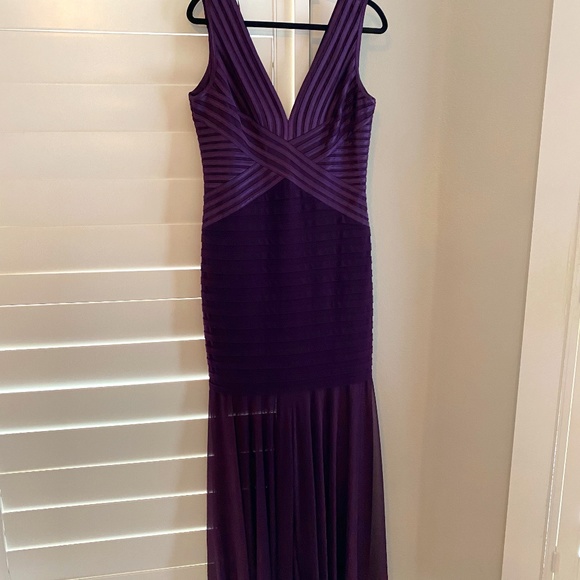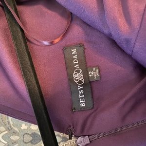 Betsy & Adam Plum cocktail dress in excellent condition. This dress has been worn once for a wedding. It is very comfortable and figure flattering. The fabric does have some give and the bottom of the dress is sheer.