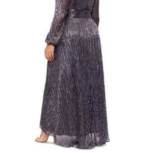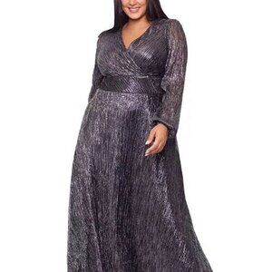 Betsy & Adam Plus Size Metallic Long-Sleeve Wrap Gown