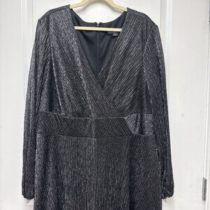 Betsy & Adam Plus Size 22W Black Metallic Long-Sleeve Wrap Cocktail Dress Gown