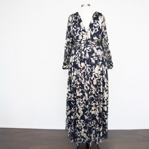 Betsy & Adam - Plus Size Foil Printed Mesh Gown
