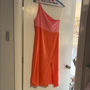 Elegant red gown with dramatic ruffle detail. Sleeveless design. Perfect for formal events.