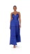 Elegant royal blue gown with spaghetti straps. Flowy and sophisticated design. Perfect for formal occasions.