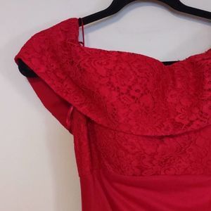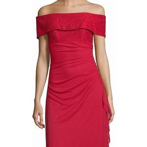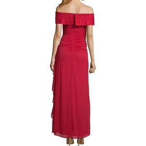 Betsy & Adam Ruched Off the Shoulder Gown Dress Red Size 6
