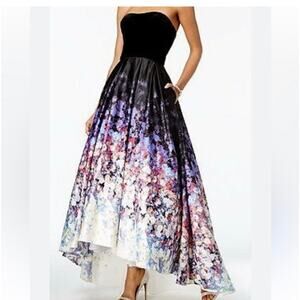 Betsy & Adam Strapless Floral Satin Gown - Size 2
