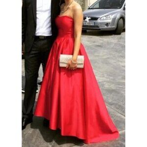 Betsy & Adam Strapless Red Satin Evening Gown Formal Maxi Dress Sz 6