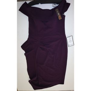 Betsy & Adam Sz 16 Mulberry Off The Shoulder Midi Crepe Side Ruched Dress